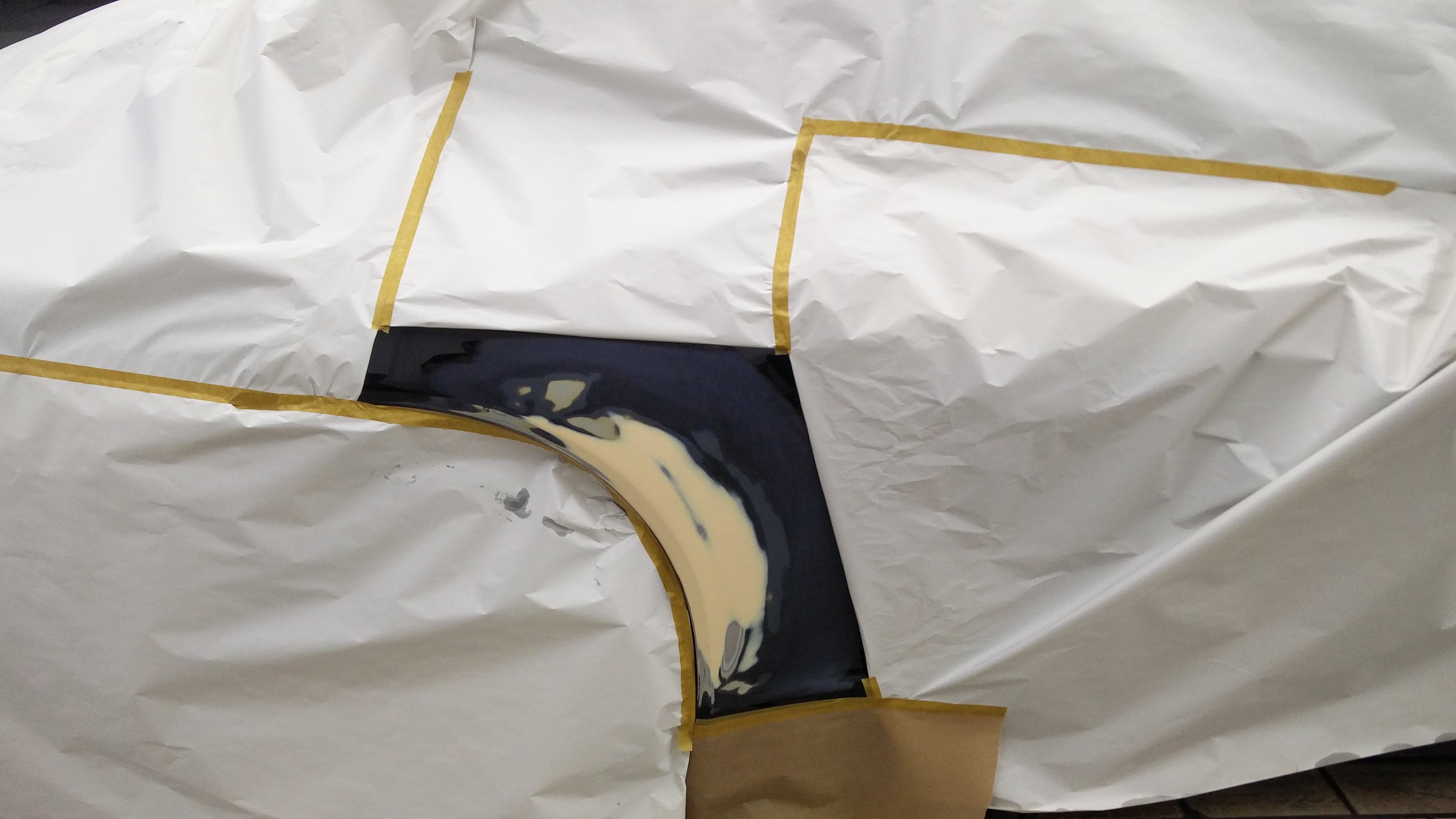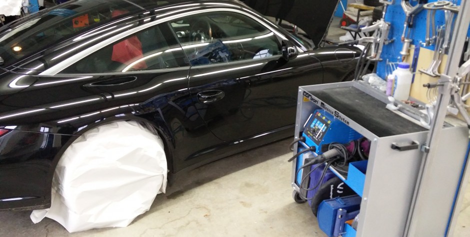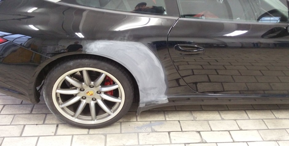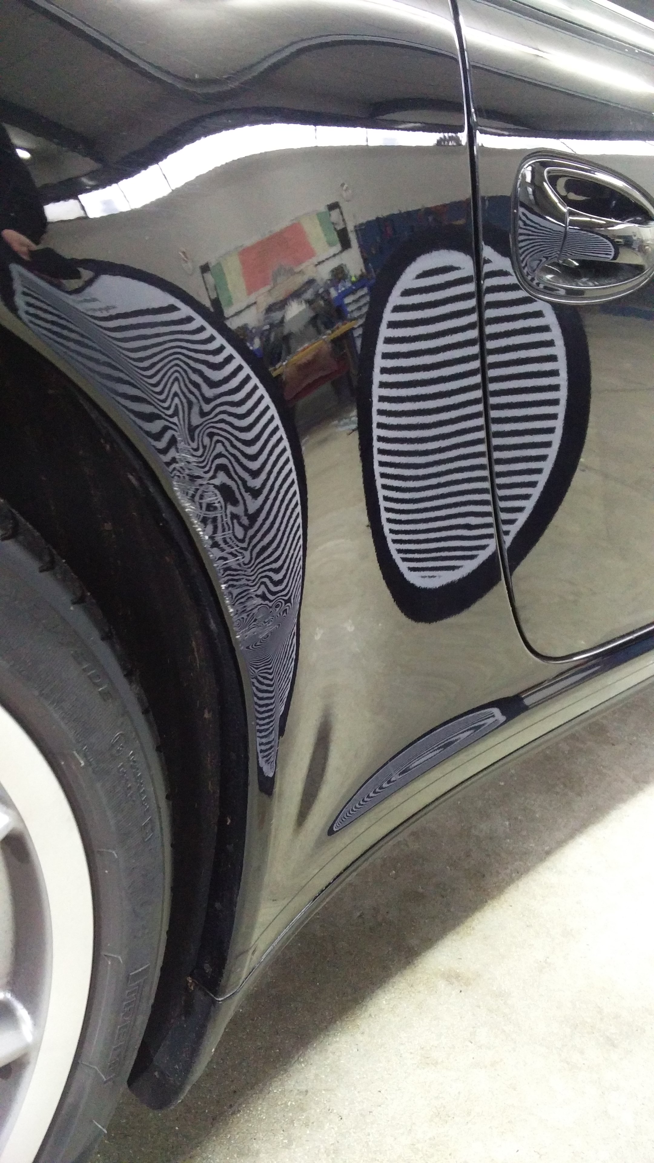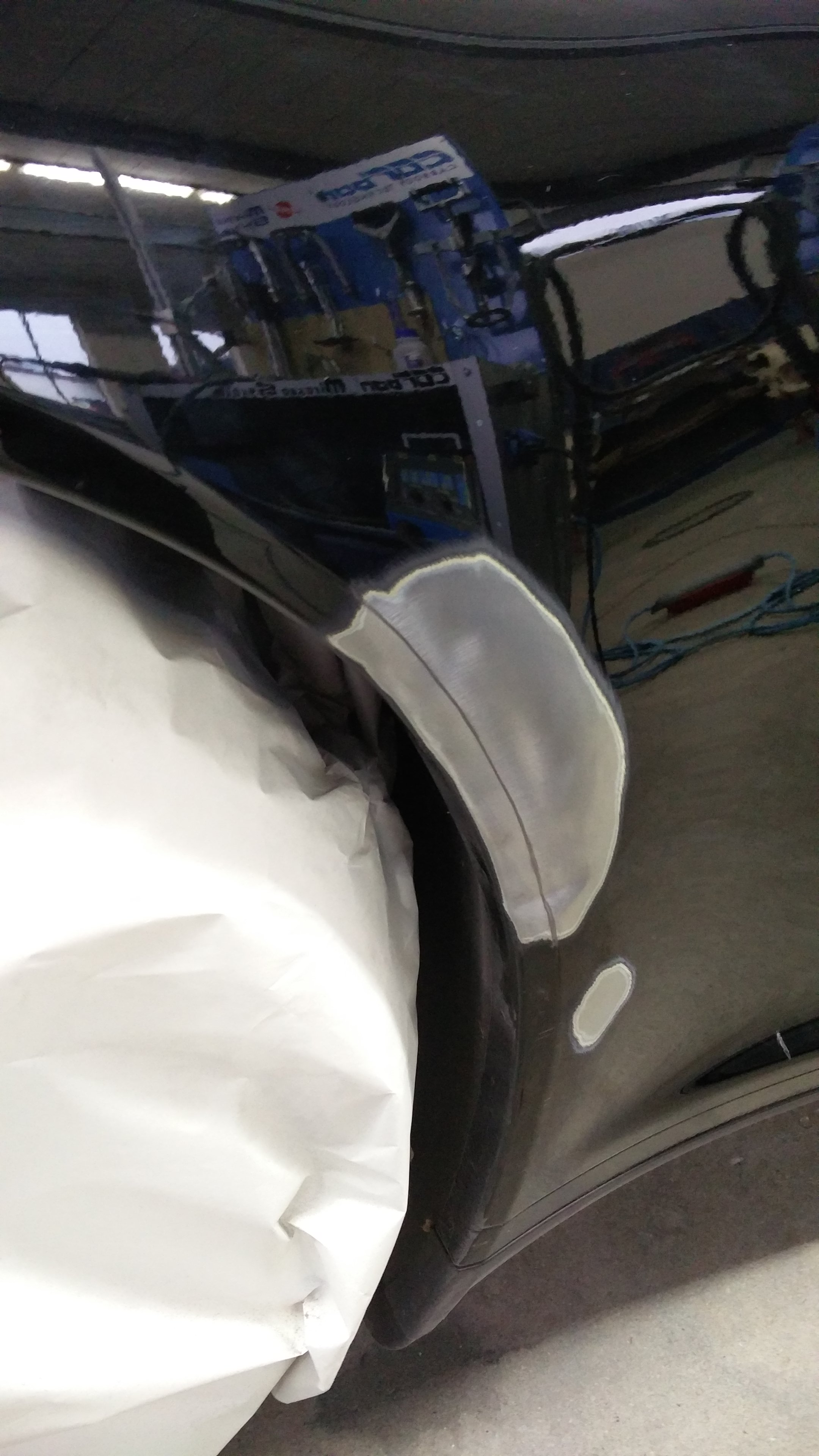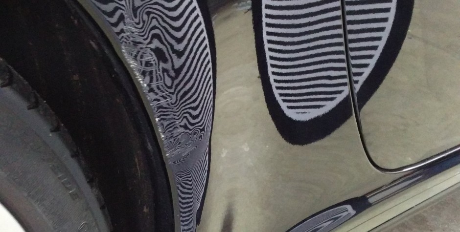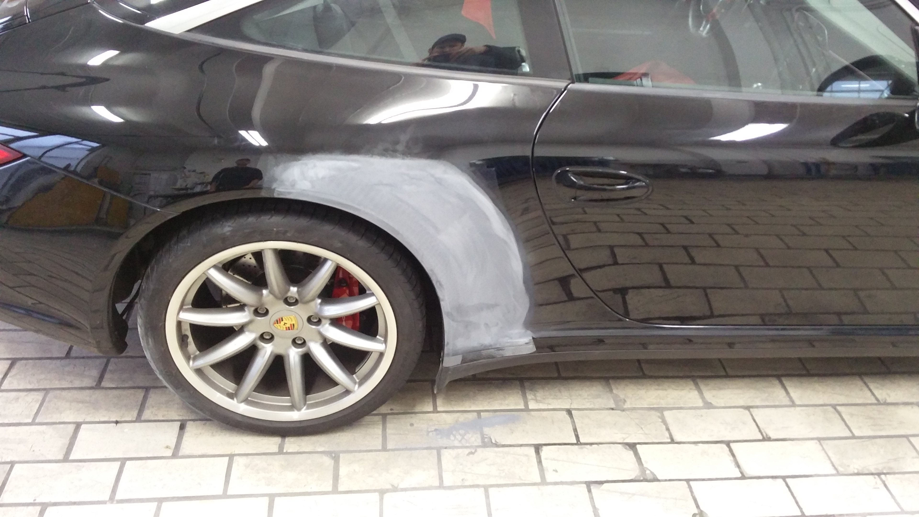 In diesem Fall haben wir für unseren Kunden den Radlauf mit dem Miracel-System von Carbon ausgebeult, gespachtelt und lackiert. Ein grober Ablauf der Reparaturen kann man den Bildern entnehmen.